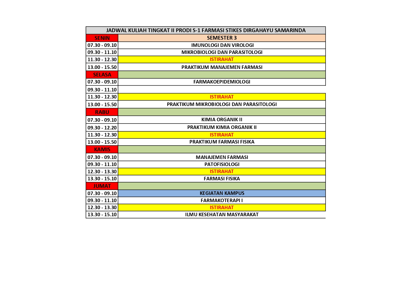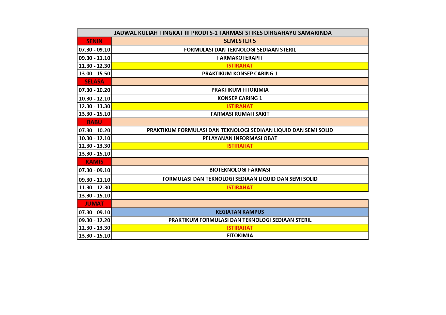 Jadwal Kuliah Farmasi Ganjil 2025-2026