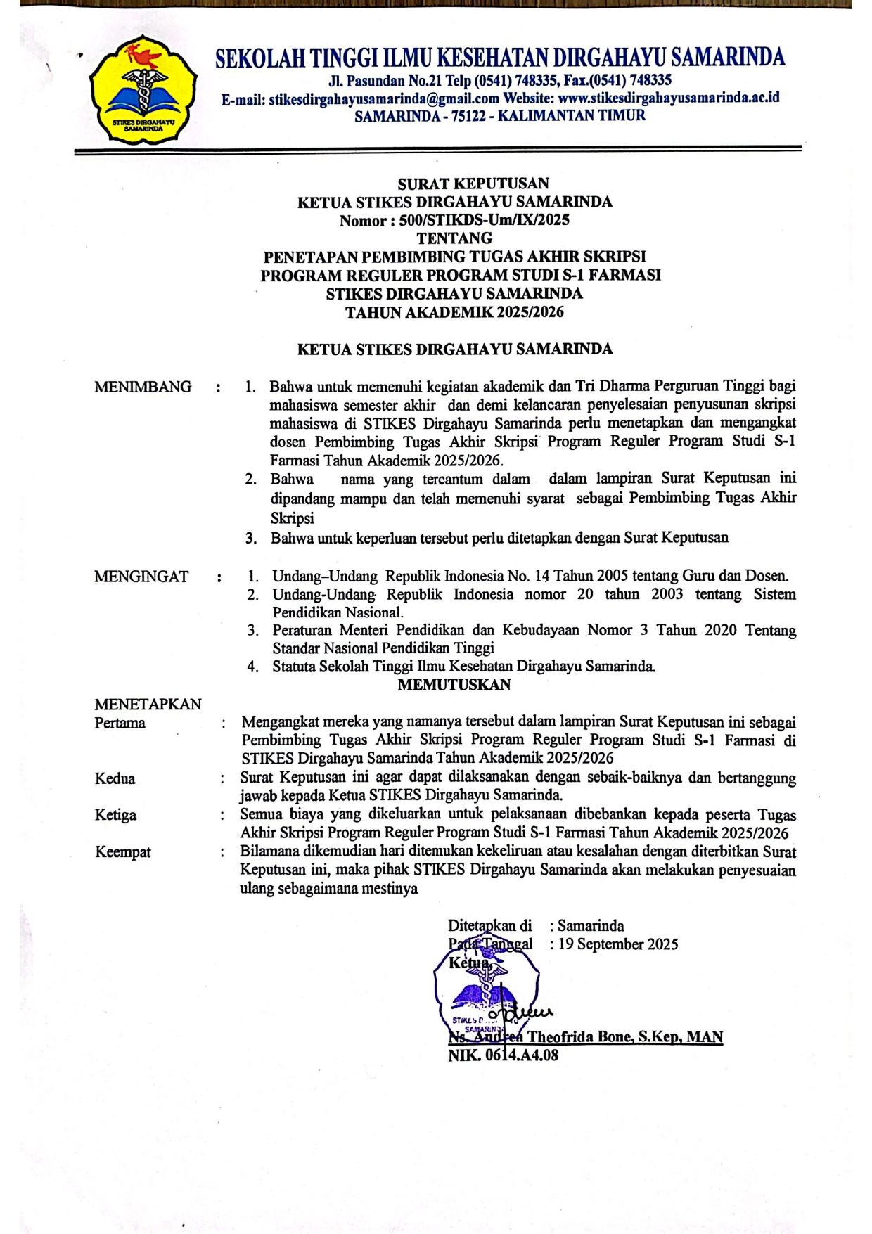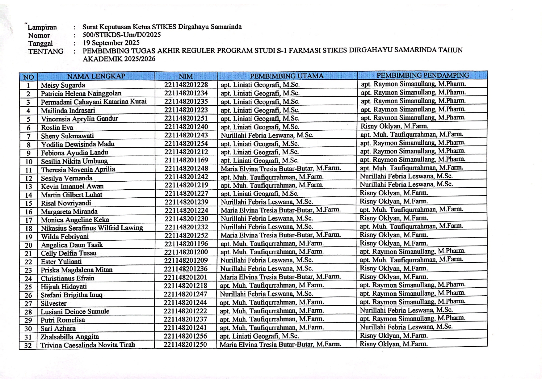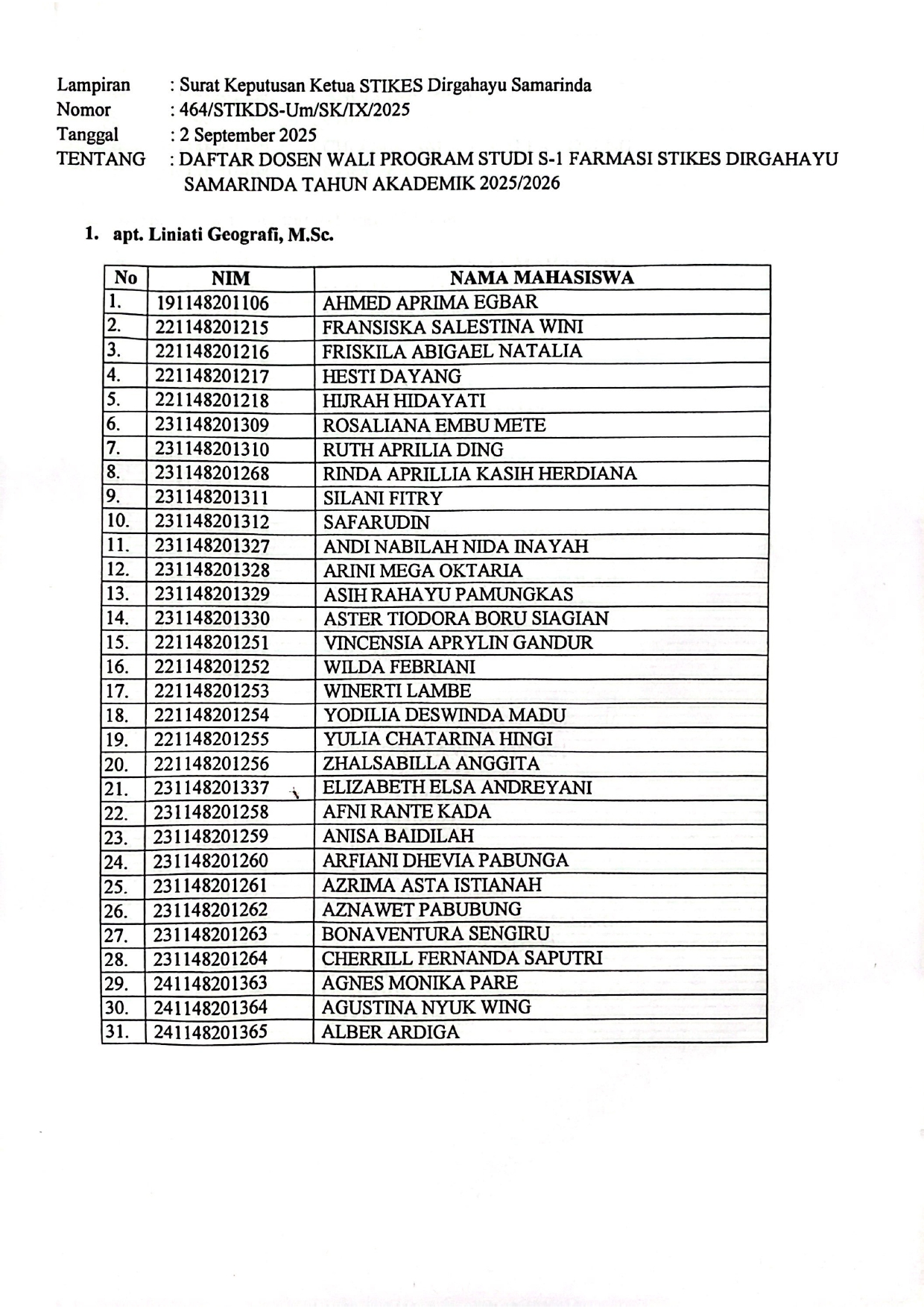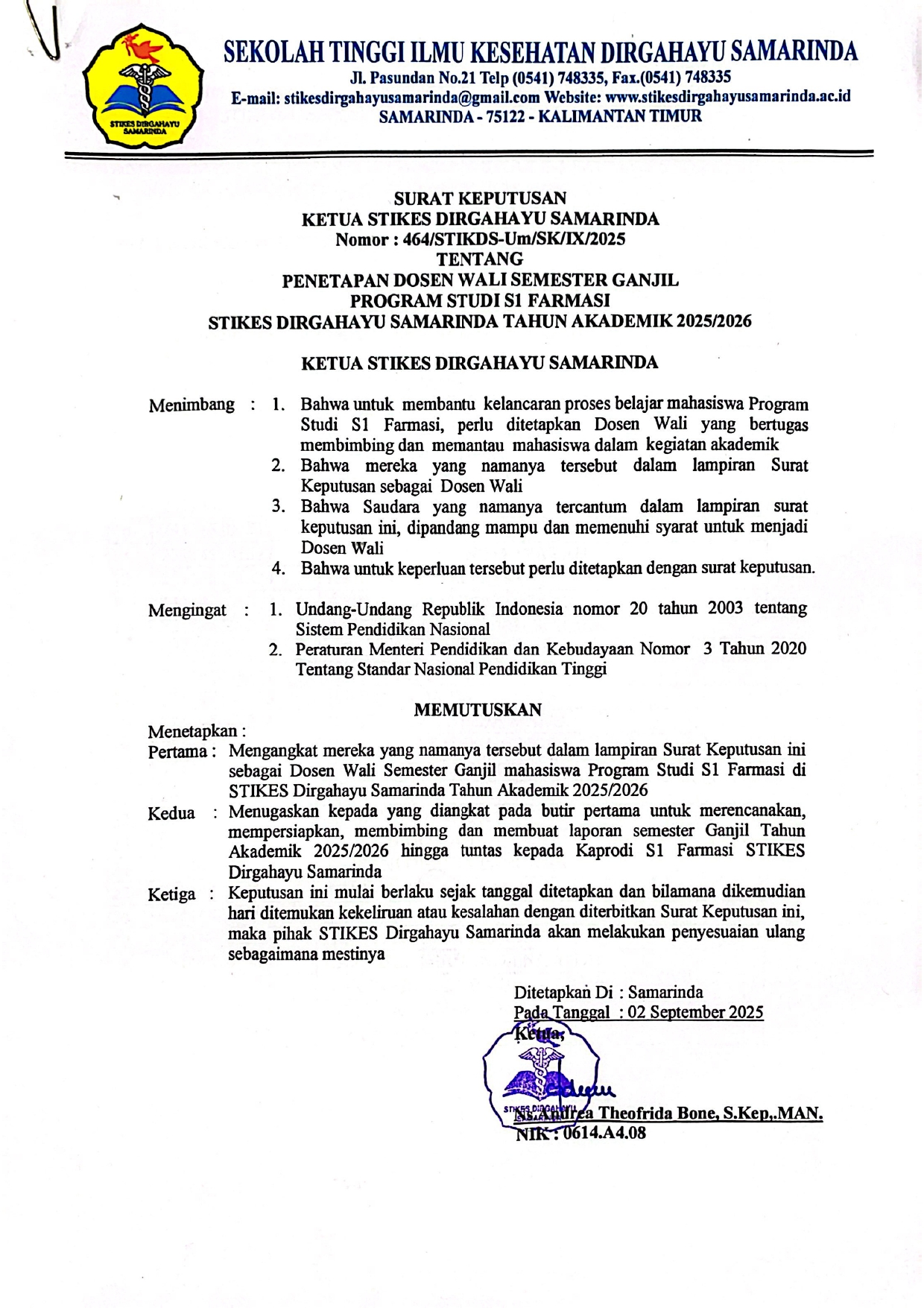 SK Dosen Wali Farmasi Ganjil 2025-2026